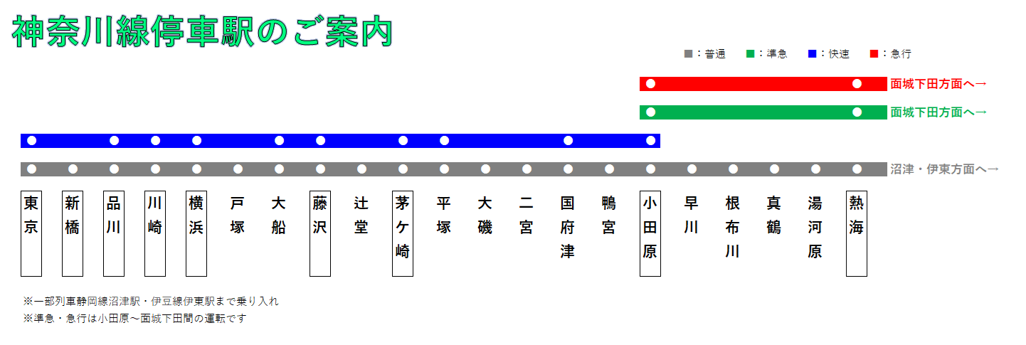 ここでは面城急行鉄道線の在来線と新幹線の路線別停車駅と所要時間をご案内しています。