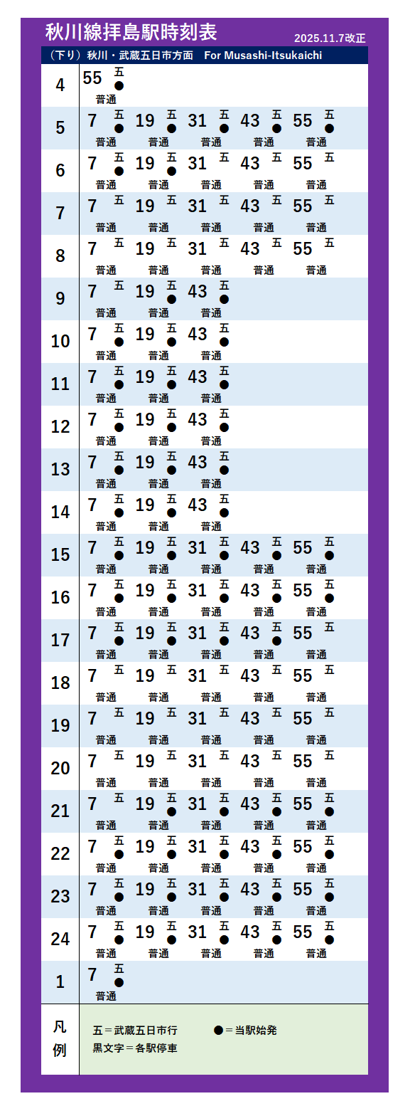 | 拝島駅 | 武蔵五日市駅 | - | - | - | - | |