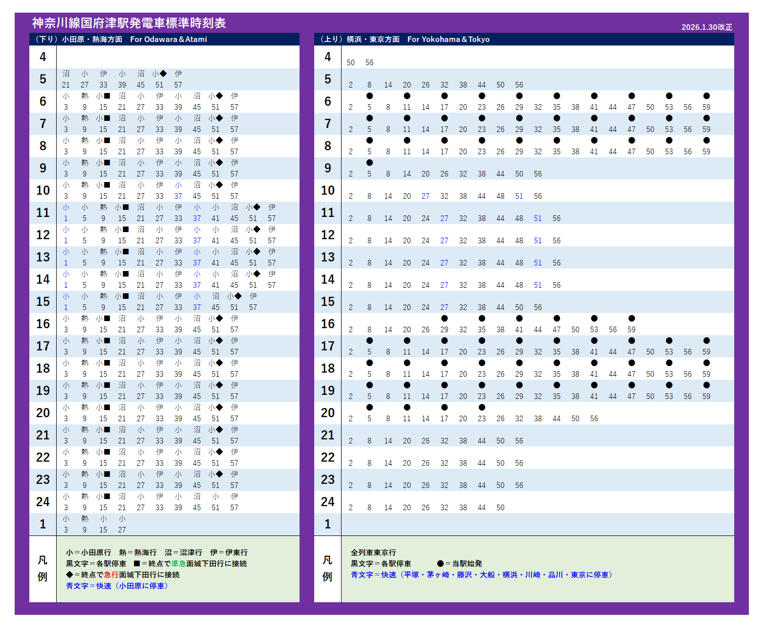 | 神奈川線(2026年1月30日改正) | ||||||