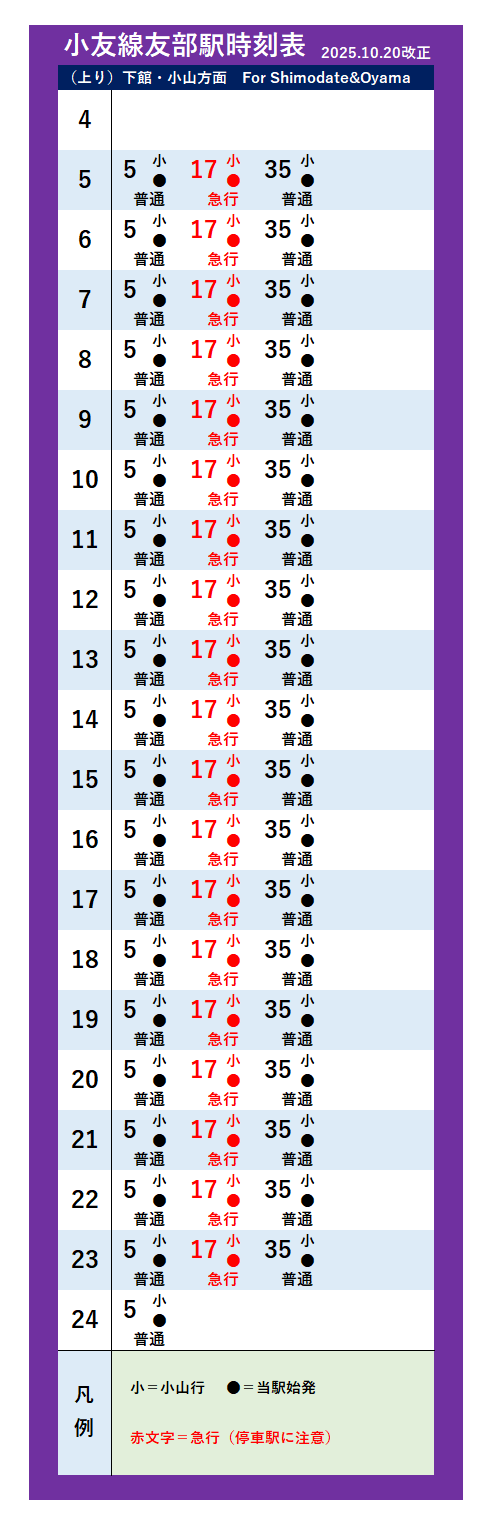 | 小友(おゆう)線(2025年10月20日改正) | ||||||