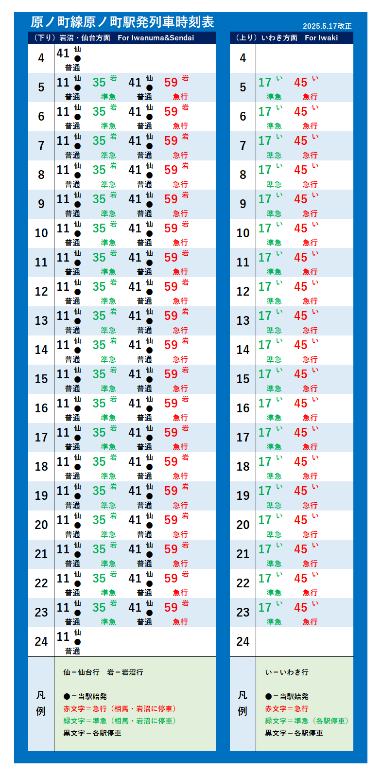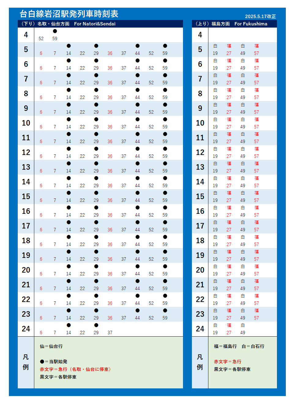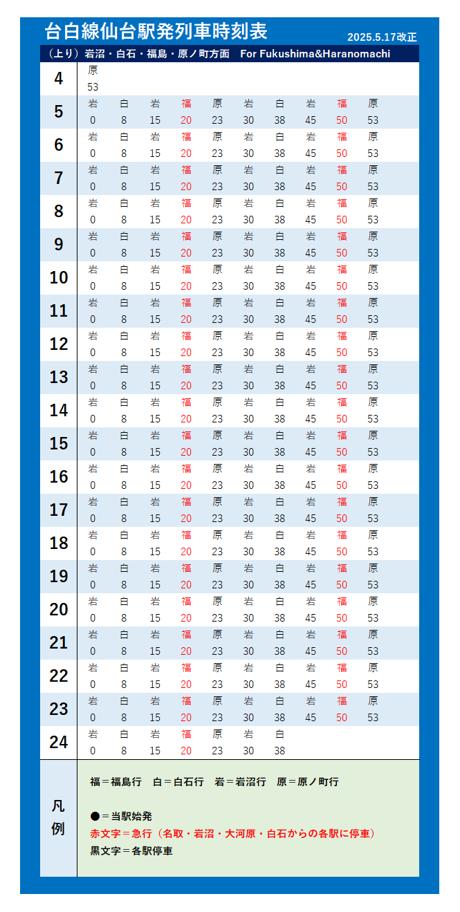 | 台白線・福島線・原ノ町線(2025年5月17日改正) | |||||||