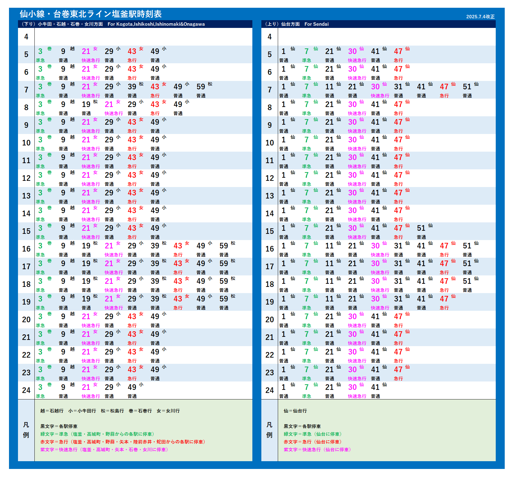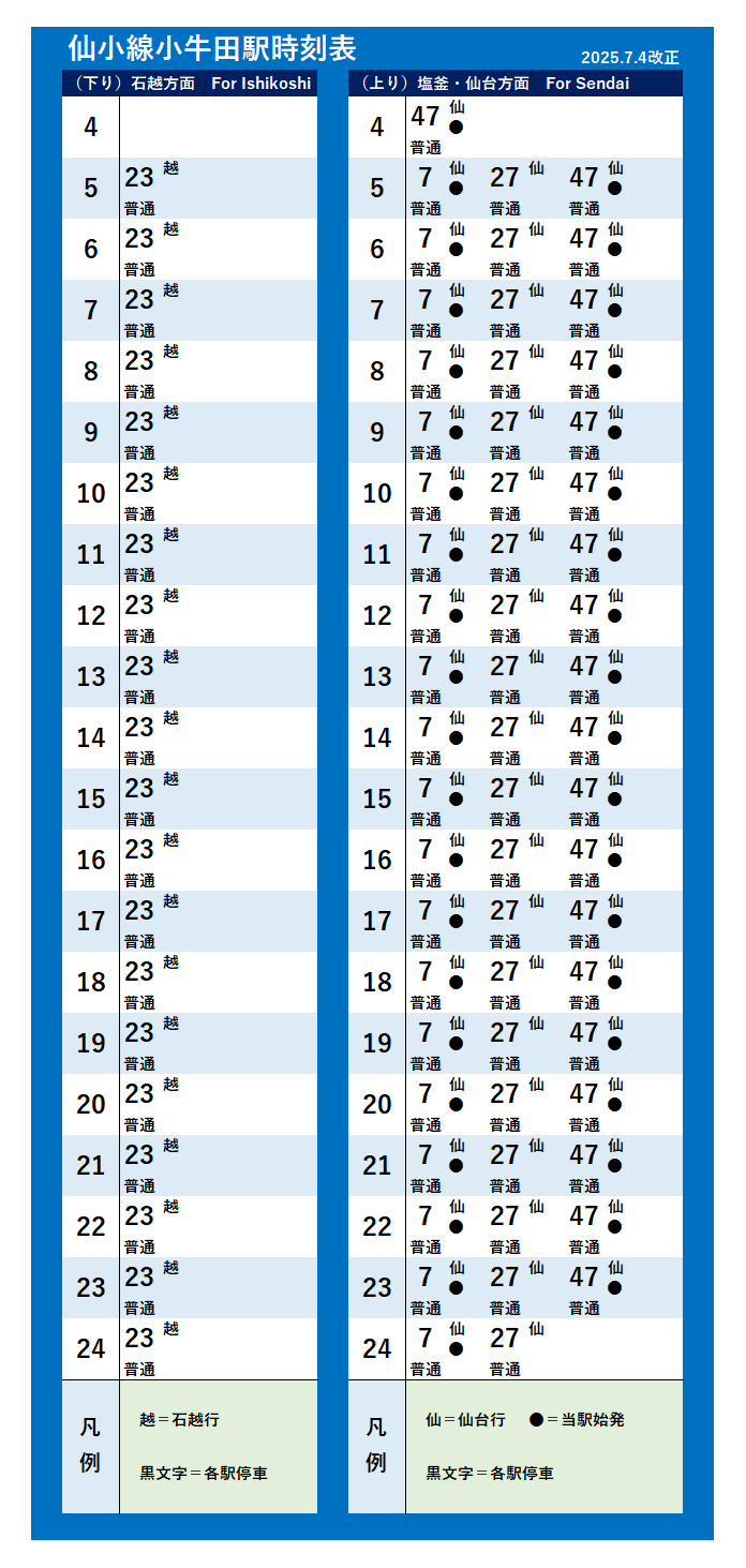 | 仙小線(2025年7月4日改正) | |||||||