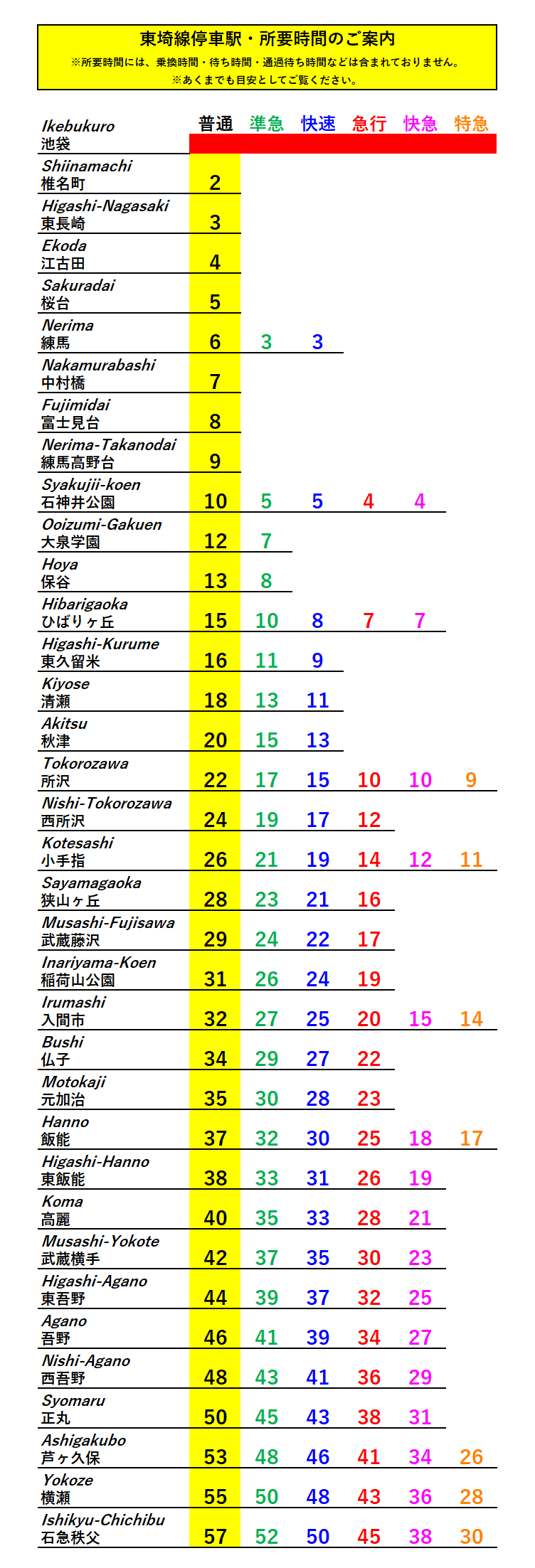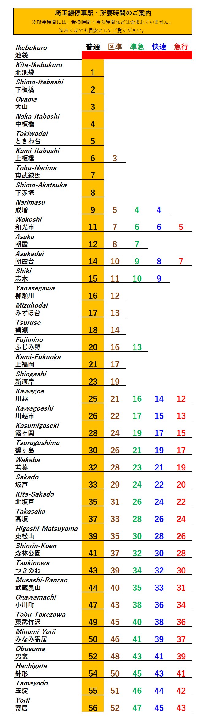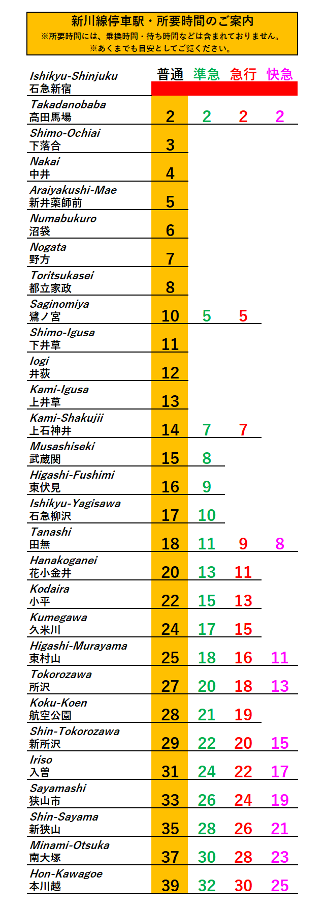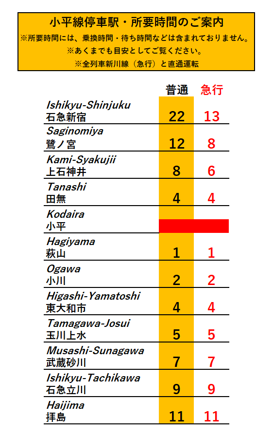 ★所要時間・停車駅のご案内★