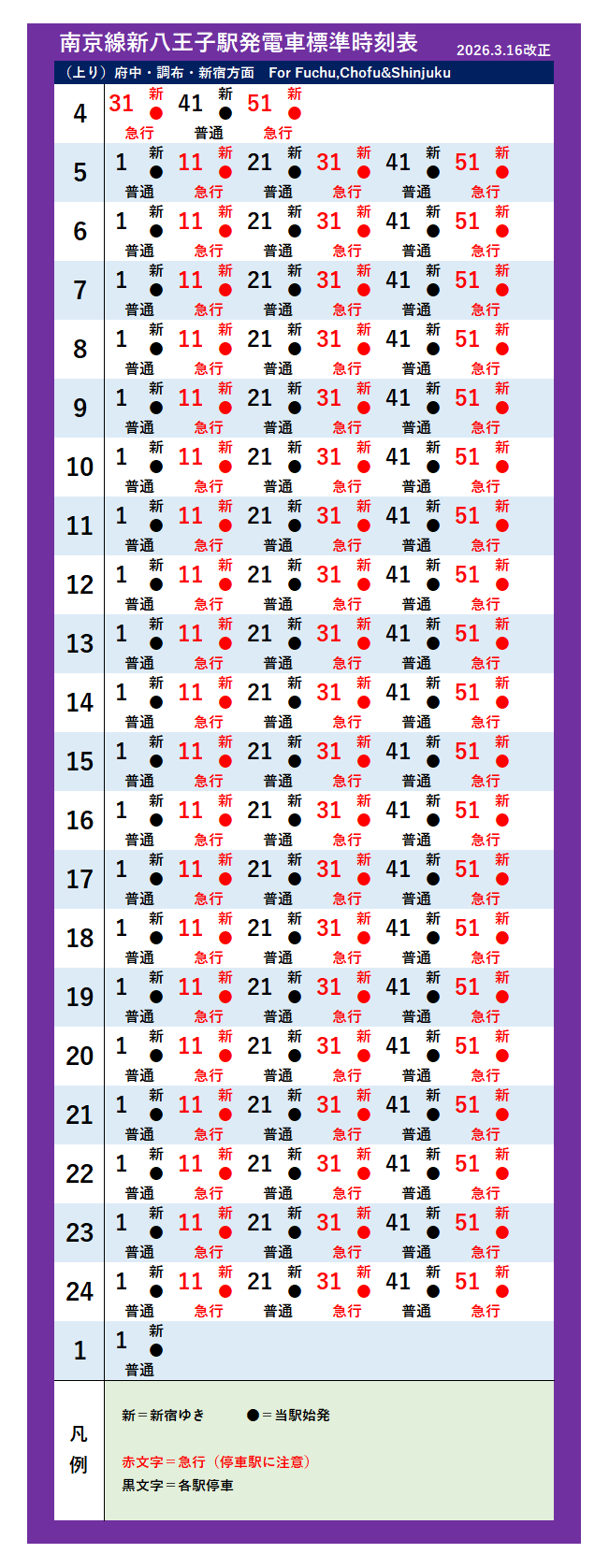 南京線(2026年3月16日改正)
