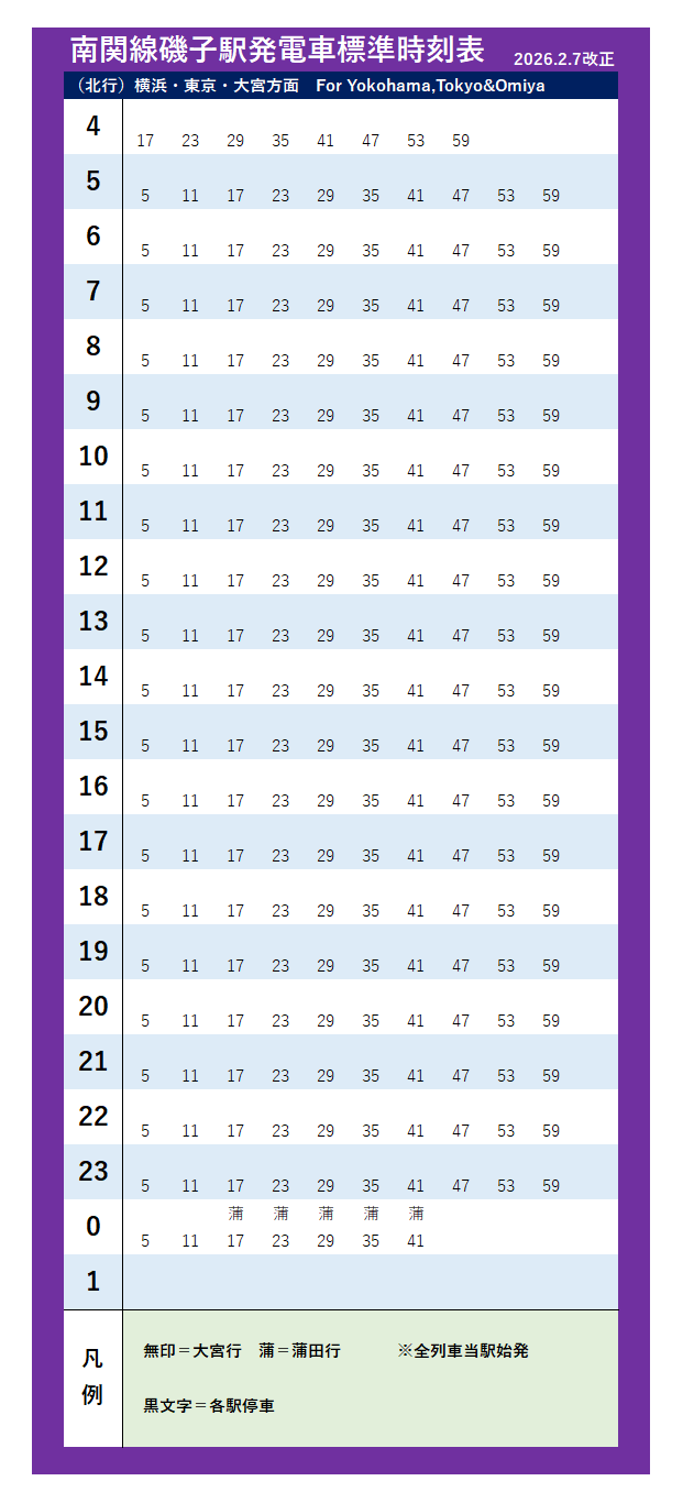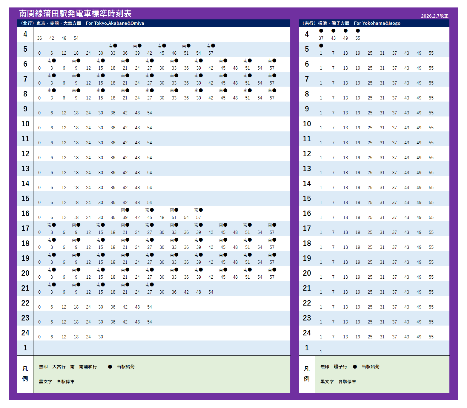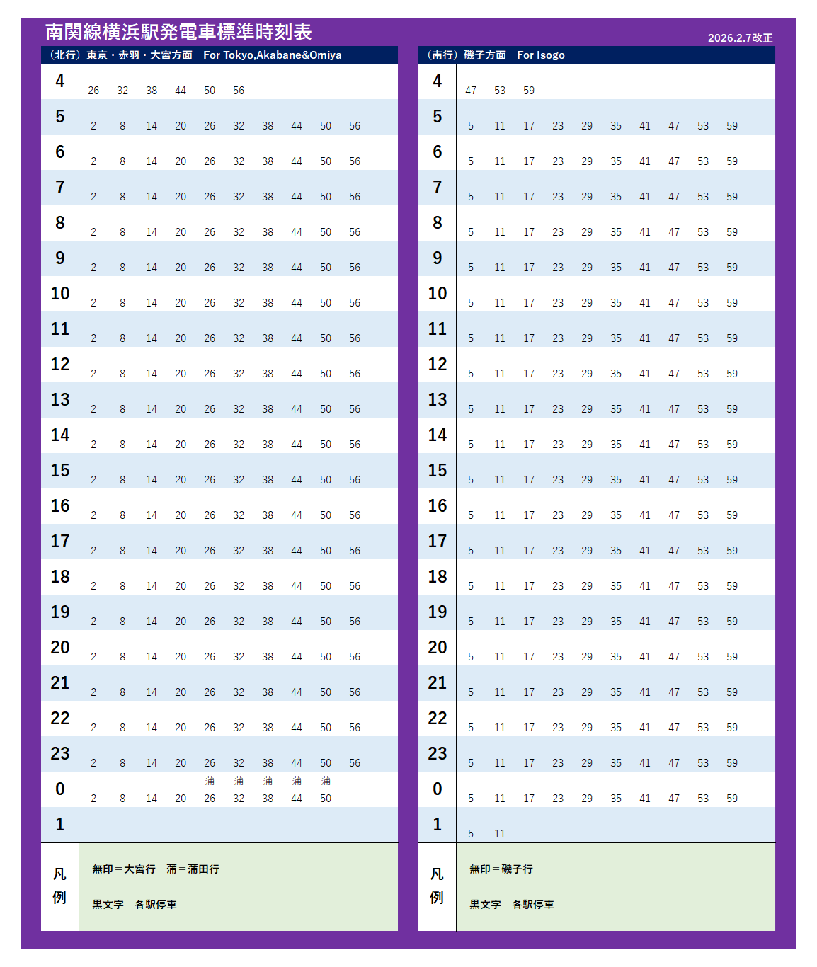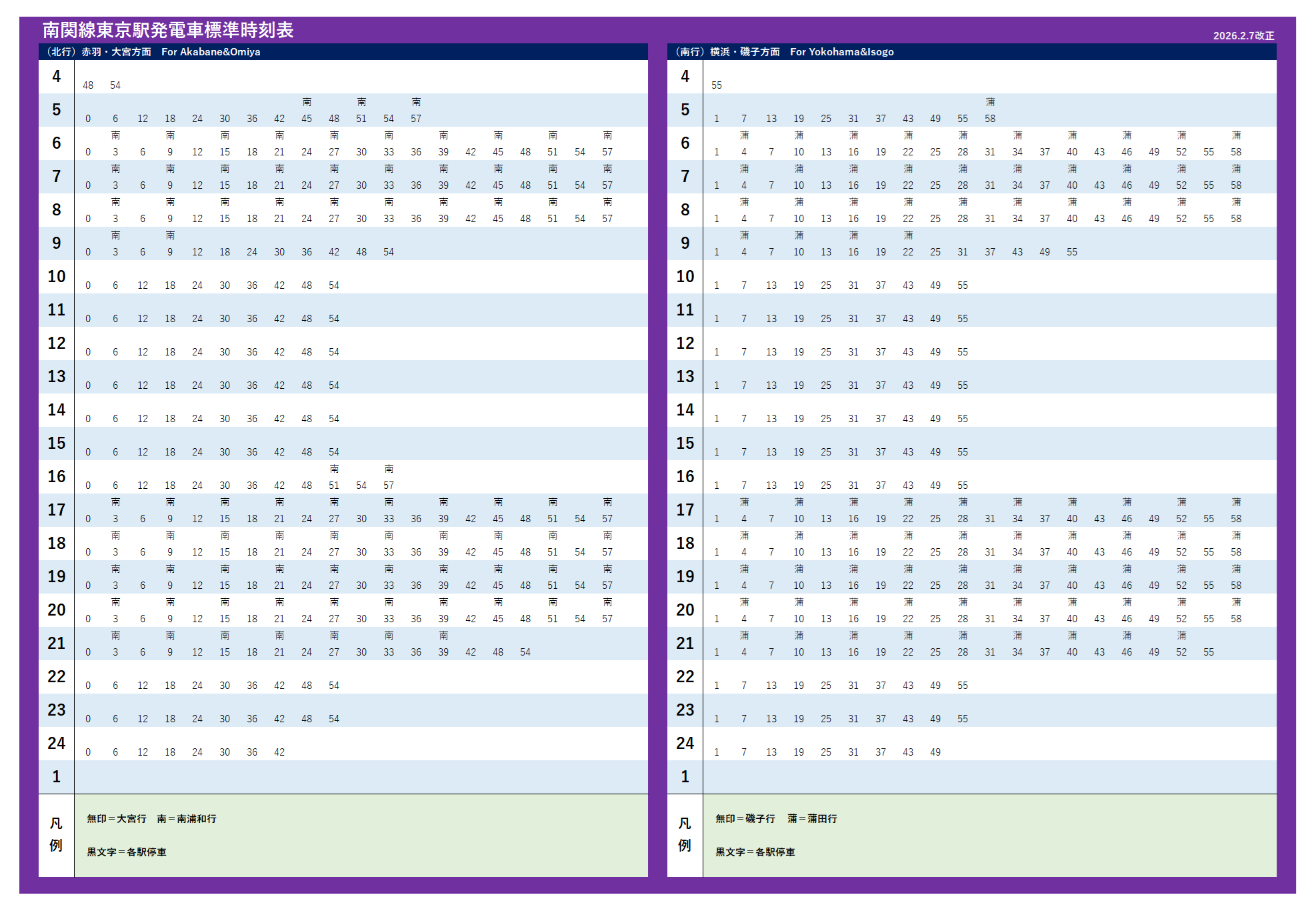 | 南関線(2026年2月7日改正) | |||||||