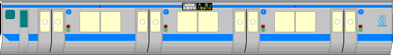 | 車内設備 | トイレ(1号車の磯子寄り・8号車の磯子寄り・15号車の大宮寄り) 車椅子・ベビーカースペース(1号車〜14号車の磯子寄り・15号車の大宮寄り) LCD車内案内板(全てのドアの上部に設置) 大型フルカラー行先表示機(前面・側面ともに) 優先席(2〜14号車の大宮寄り) 各車両に防犯カメラあり。 客室内は最新のLED照明。 各車両にSOSボタン設置(車掌への緊急連絡用/押すと電車が止まります) 各車両に乗務員呼び出しボタン設置(車掌への簡易連絡用/押しても電車は止まりません) ※急を要さない場合は、SOSボタンは使用禁止 です(すぐに対応できない場合があります) 各駅到着前に自動放送で駅ナンバーを放送するようにしました。 ディスプレイ式広告表示装置 全ての座席にコンセントを設置(携帯電話・スマートフォン・携帯ゲーム機などの充電) 全ての座席にUSB電源を設置。 グリーン車にWi-Fi設備を設置。 座席間にディバイダを設置して、座席間のプライベートをお守りします! ※横からのスマホなどののぞき見防止など。 各車両に空気清浄機を設置。 |